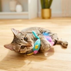 - From Frisco by Chewy. Colorful feathers, string, and crinkle material, with a sprinkle of catnip make this cat teaser wand toy a playtime go-to.