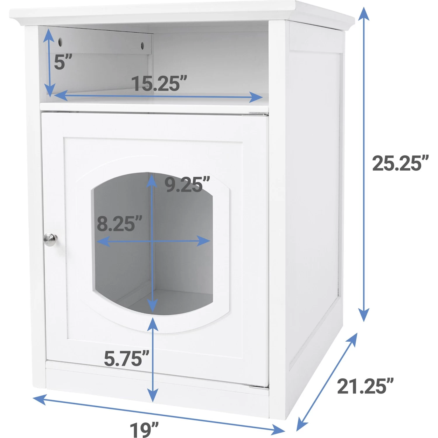 - As a private litter box enclosure for your kitty, it fits litter boxes up to 20 inches long and 15.15 inches wide.