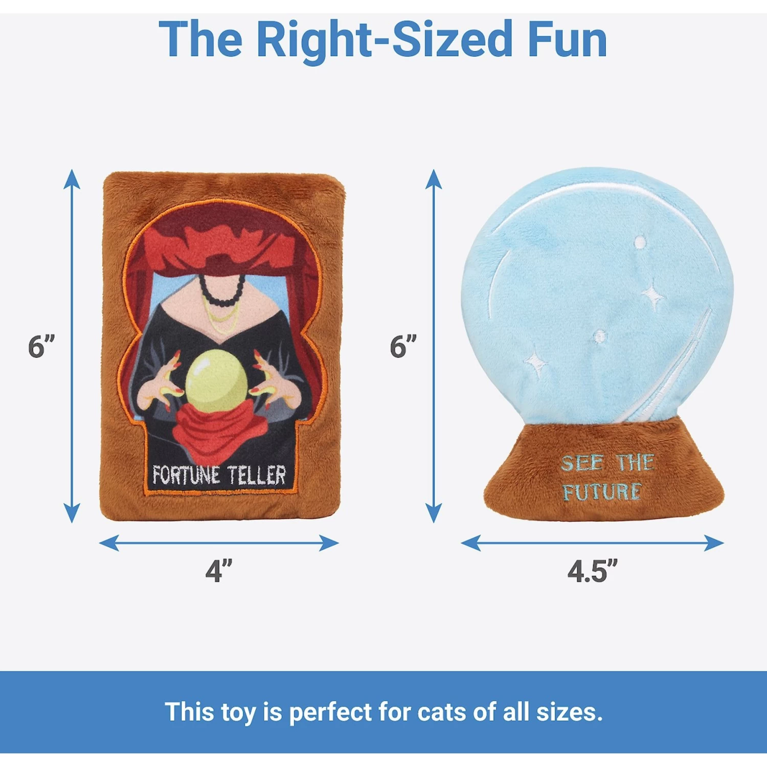 - Plush crystal ball and tarot card toys bring a little magic to your kitty’s favorite games.