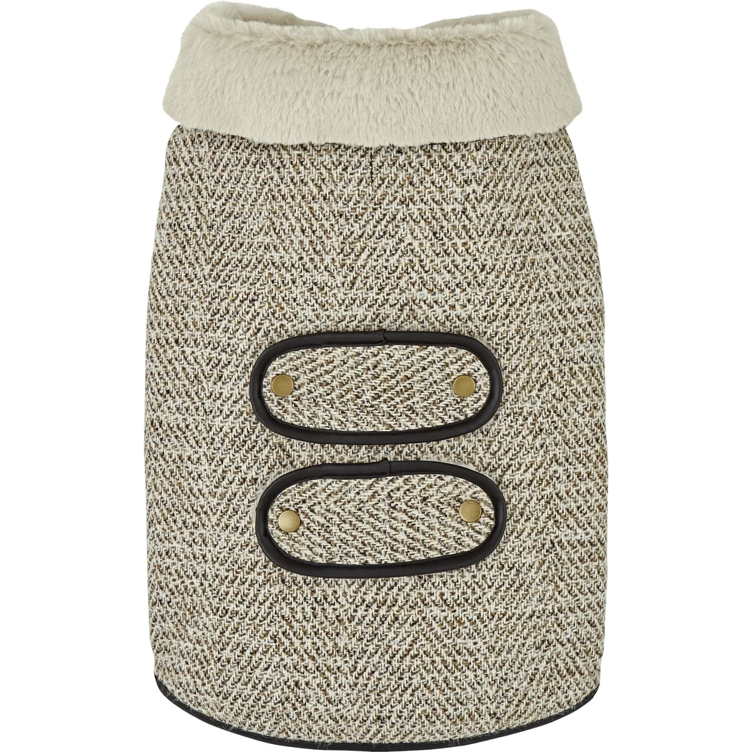 - The luxuriously soft faux fur lining, tweed shell, and accent buttons will have your pet ready to hit the block like it’s a runway.