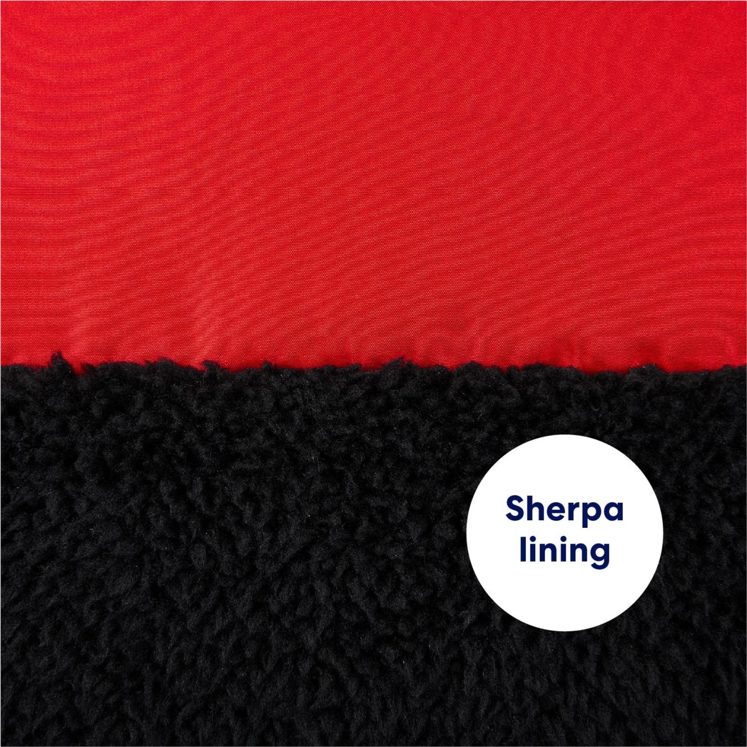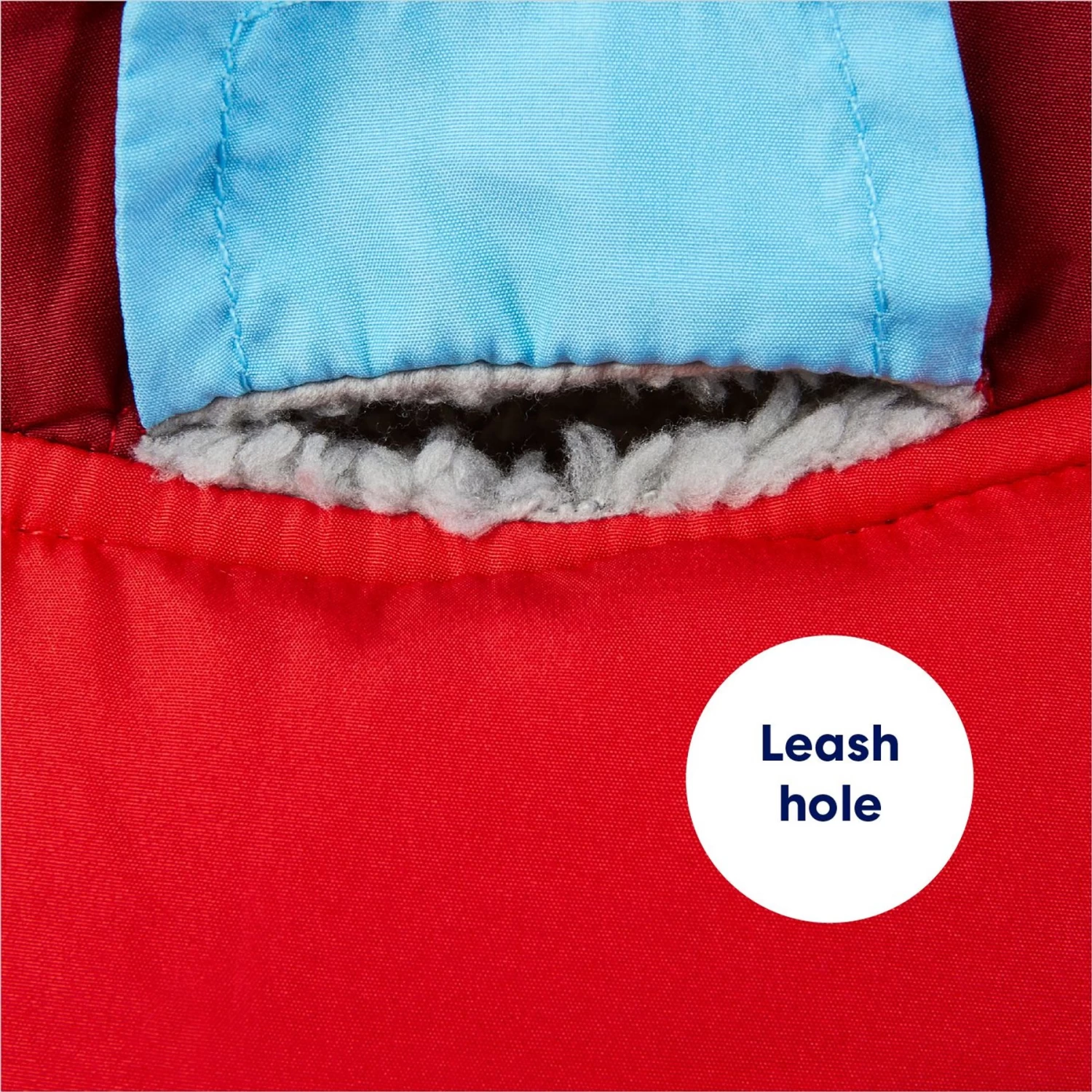 - Mediumweight coat with sherpa lining for added warmth and a bold design make for a highly stylish look that’s sure to get your pet noticed.