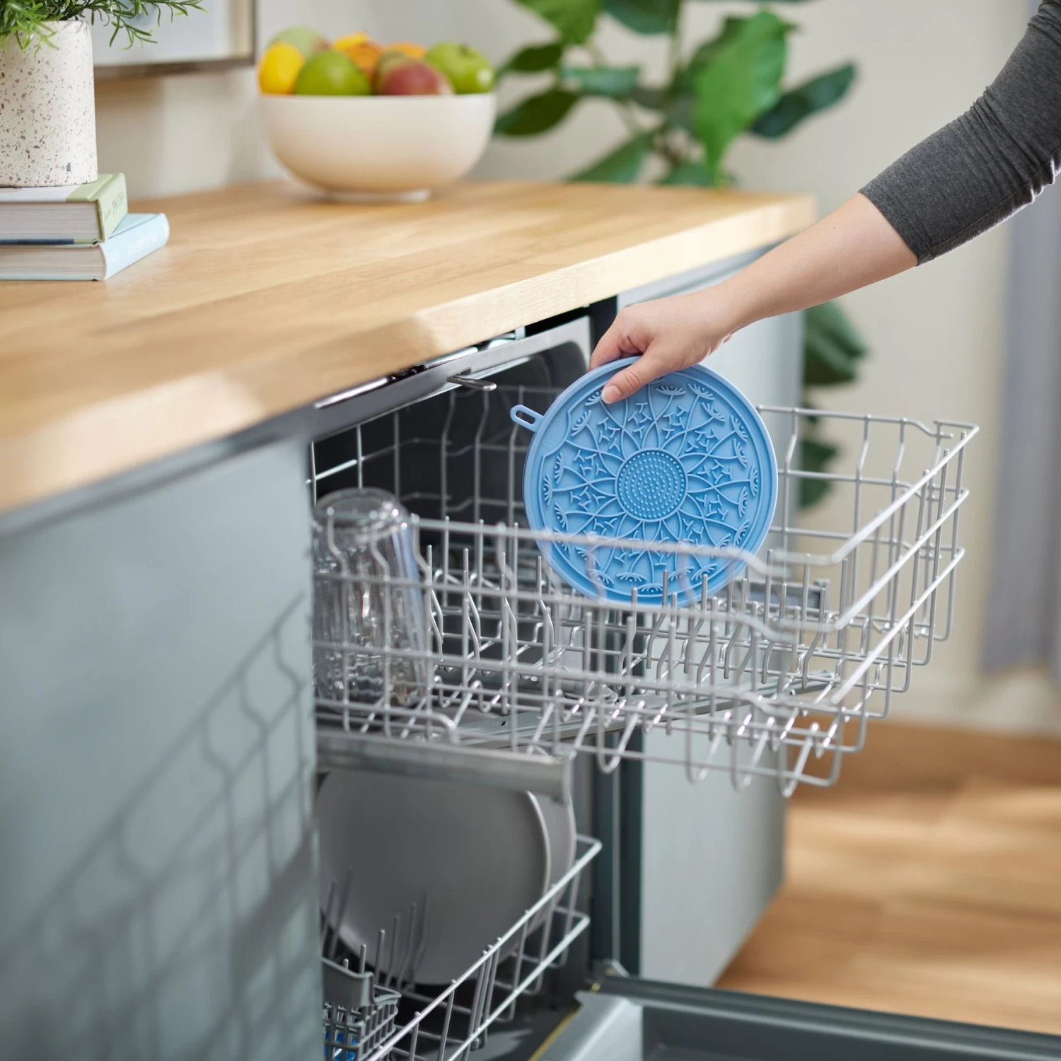- Place it in the top rack of the dishwasher for easy cleaning.